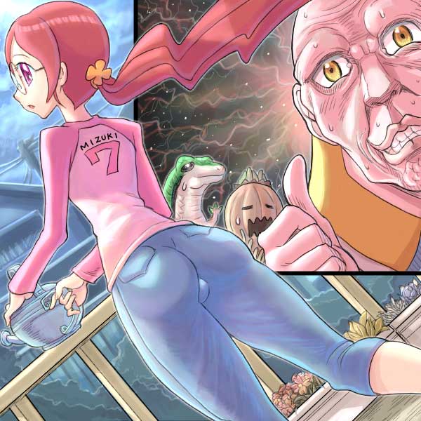 >ほのかさん元気に気が違っていてかわいいです。目がらんらんと輝いて大変。なぎさ・ムカデの苦労もひとしおでしょうね。サバーク博士も圧倒されてますがほのかさんは博士って肩書きに反応しないんでしょうか。やはりヘソ最優先でしょうか。